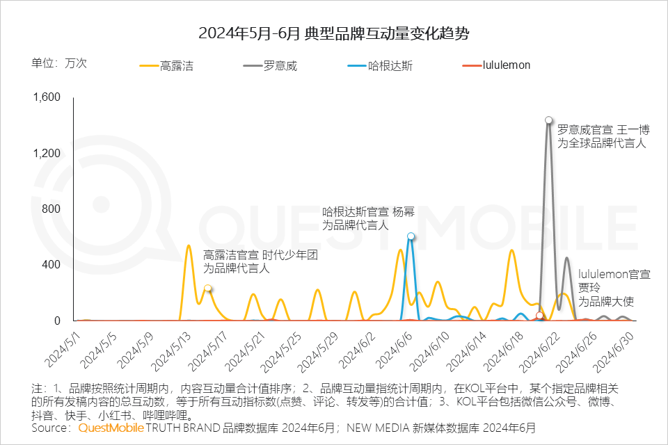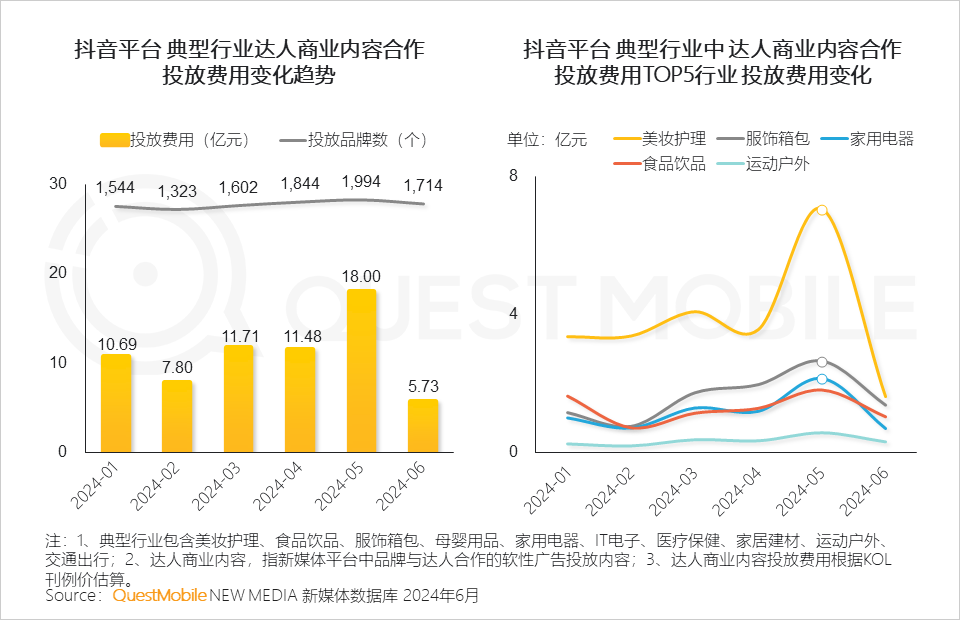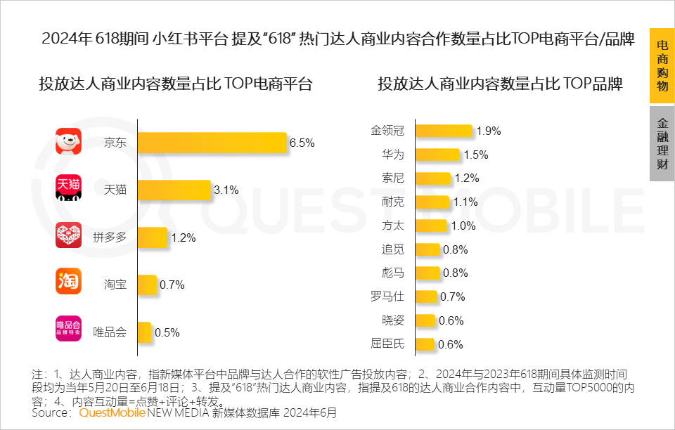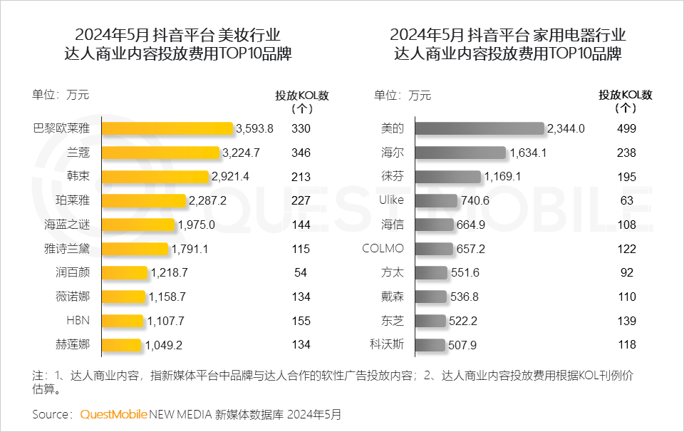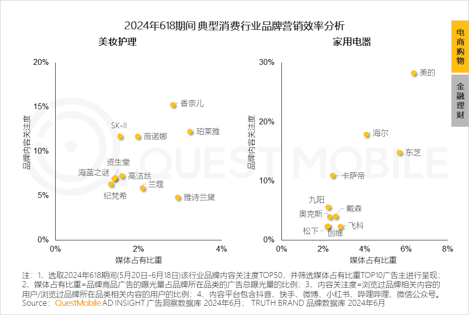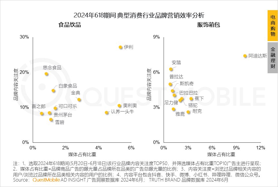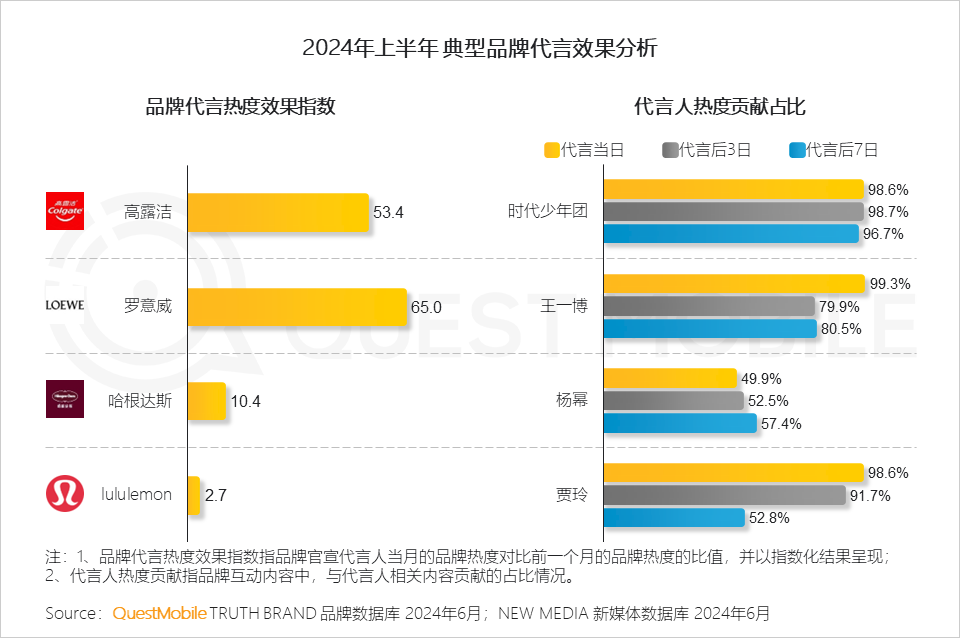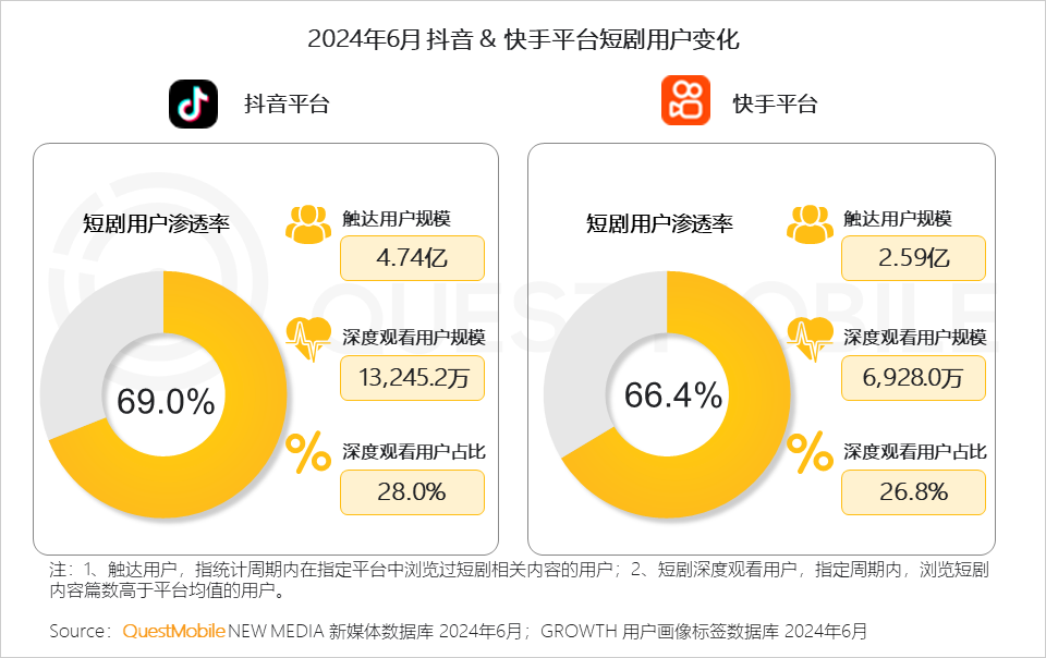 美妆行业中,韩束、珀莱雅等国货品牌在软广投放上排名前列,投放金额均超2,000万,而家用电器中则更为突出,投放费用排名前三品牌均为国货品牌。5.2 热剧营销如火如荼,从内容场到消费场,品牌瞄准优质内容Ⅰ. 2024年上半年,长剧爆款频出,头部作品影响力持续Ⅱ. 各平台独播剧同档竞争,多类型多题材,满足观众内容偏好的同时也带动品牌营销积极性Ⅲ. 热播剧集吸金优势明显,其中快消类品牌合作最为活跃Ⅳ. 短剧行业不仅产业链日益完善,商业模式也日趋成熟,涵盖了广告合作、用户付费模式,并拓展至直播带货等领域Ⅴ. 短剧成为用户重要的娱乐方式之一,短视频平台短剧内容用户渗透率超6成,其中近三成用户为深度观看用户QuestMobile数据显示,抖音与快手平台短剧内容触达用户规模分别达4.74亿、2.59亿,其中深度观看用户分别达13,245.2万和6,928.0万。Ⅵ. 针对短视频平台短剧,女性和中等消费能力群体显著增长,抖音吸引更多24岁以下及高消费群体,快手拓展更多社会中坚力量Ⅶ. 短剧赛道日益内卷,题材焕新速度快,及时监测市场动态并迅速响应观众需求成为短剧创作者与品牌策略制定的重要考量因素短视频平台短剧热门内容元素类似,霸道总裁、重生、亲情、萌娃等元素被高频提及,短剧也是此前网络“爽文”的可视化表现。Ⅷ. 多样化的题材吸引不同观众,品牌通过定制短剧,精准筛选用户如谷雨合作的离婚+亲情题材短剧《大过年的》,播出时间与过年团圆时间契合,吸引了抖音平台超2亿用户观看,受众相对广泛。珀莱雅合作的女性意识觉醒短剧《觉醒吧!恋爱脑》则吸引了更多年轻女性观看。QuestMobile数据显示,《大过年的》开播后两个月触达用户中,2024年2月有2226.9万用户关注谷雨品牌内容,相比开播前一个月环比上涨529.9%;《觉醒吧!恋爱脑》触达用户中,2023年11月有1195.3万用户关注珀莱雅内容,环比上涨31.3%。Ⅹ. 电商平台也瞄准短剧赛道,通过短剧为自身引流,洞察用户偏好,应用最新题材吸引用户眼球QuestMobile数据显示,京东合作短剧《重生之我在AI世界当特工》触达用户中有一半用户后续使用京东APP,比全网使用京东APP的比例高出5.1个百分点,一定程度上体现了短剧对于电商平台的引流作用。Ⅺ. 付费短剧通过情节设置,有效吸引并转化高消费用户;此外,“书改剧”为原著IP平台注入新流量5.3 代言营销激发消费潜力,品牌热度获得短期高曝光Ⅰ. 2024年上半年,美妆、食品等品牌持续通过代言营销抢占消费者心智Ⅱ. 顶流代言人在短期能有效拉高品牌热度,高投入的代言费用撬动成倍的营销效果,同时,代言人与品牌调性的契合度也同样重要5.4 品牌营销踩准当下热点事件,把握社会情绪营销Ⅰ. 热点事件 - 毕业季营销:品牌瞄准未来年轻消费群体,用真诚打造毕业季仪式感,直击年轻人心灵,深化品牌与年轻群体的沟通