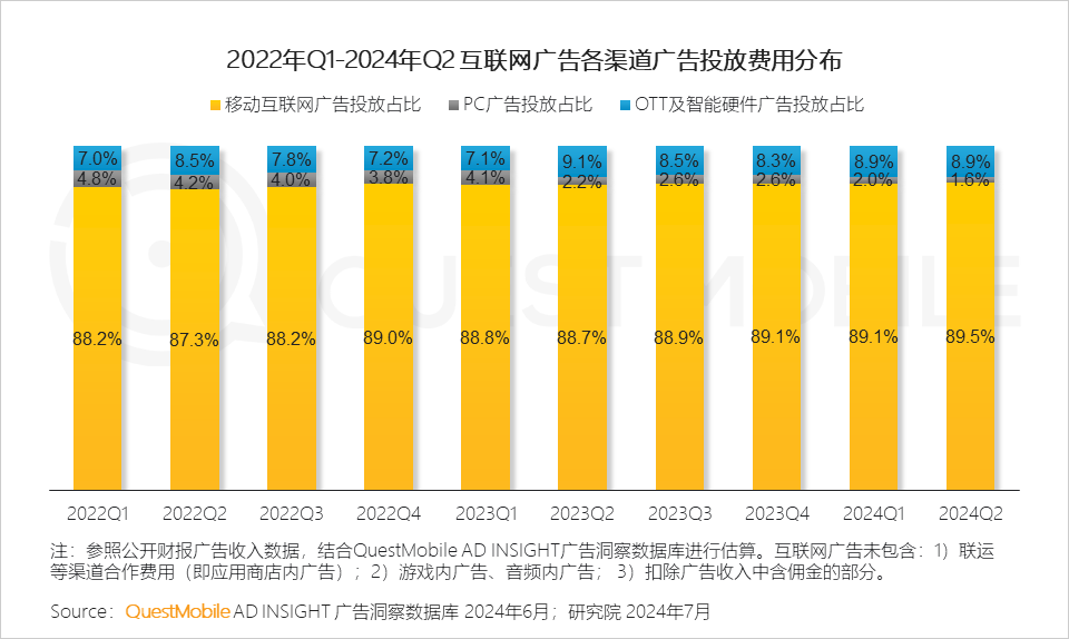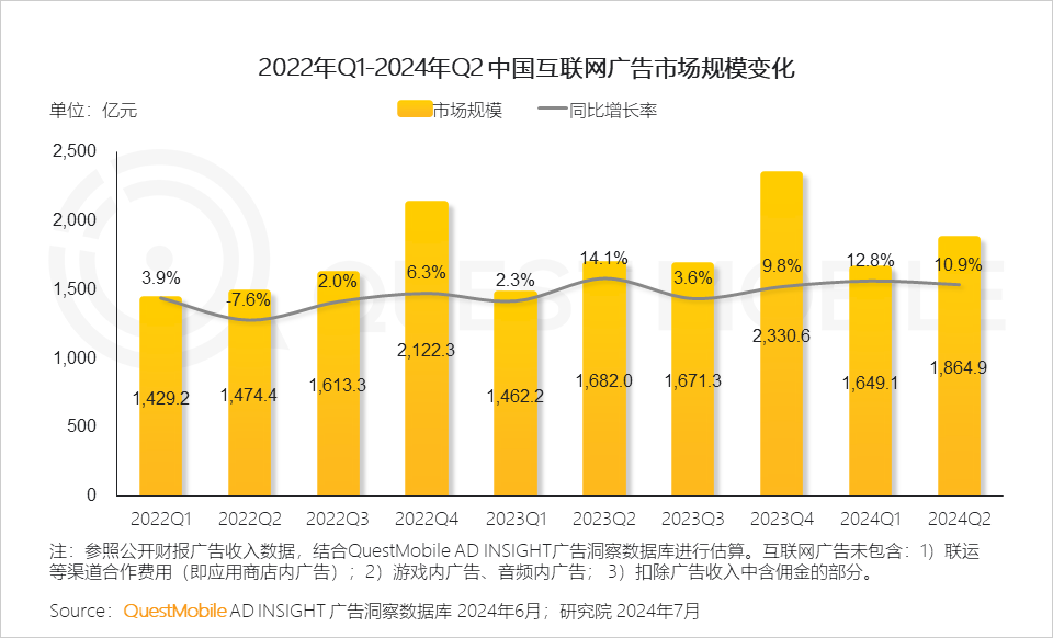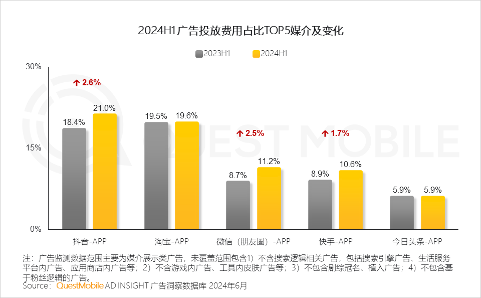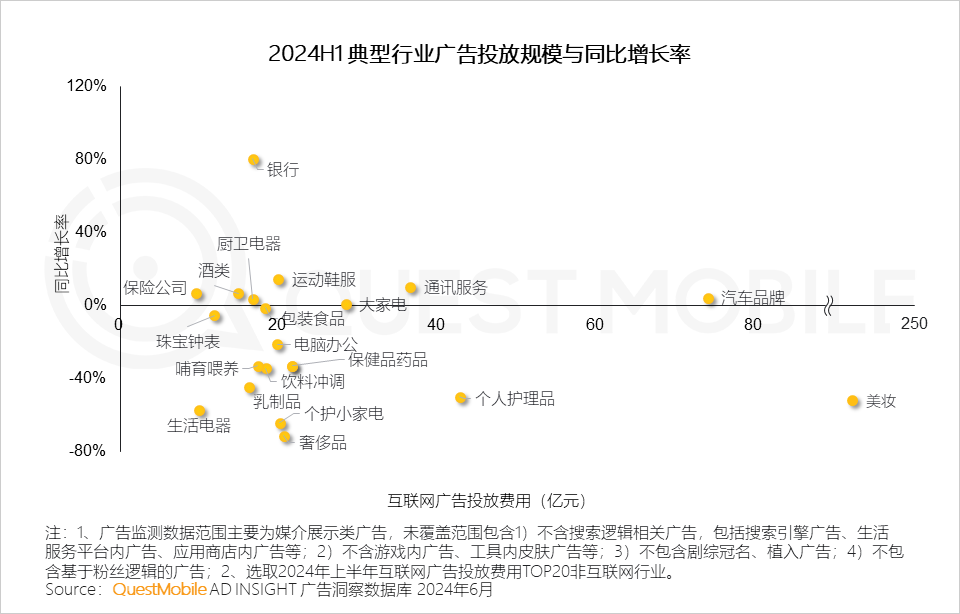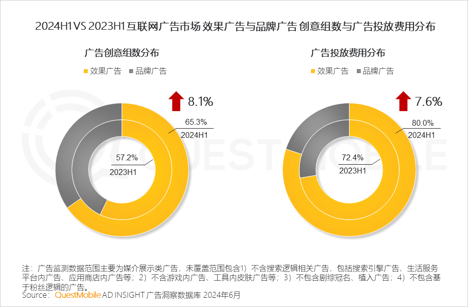 4、围绕AI的行业竞争,当各场景都在逐步AI化,留给市场的思考无论是何种形式的AI载体,都具备其各自的优势,而选择适宜的场景、打造优质的用户体验才是制胜关键5、线上投放稳定增长,品牌瞄准优质内容、运用热点事件、洞察当下社会情绪,实现最优营销效果5.1 线上营销投放稳定增长,营销预算向效果广告倾斜Ⅰ. 互联网广告市场2024年上半年继续保持增长态势,国内经济的稳步增长与数字化转型的加速是主要驱动力Ⅱ. 移动端营销保持稳定,内容侧推动大屏端营销活跃Ⅲ. 消费行业广告投放有所收紧,投放策略更加集中于头部行业,营销向更具效果化方向转变Ⅴ. 短视频和即时通讯媒介凭借其强大的社交互动性,市场份额攀升Ⅵ. 除硬广曝光外,品牌也辅以软广投放,潜移默化占领用户心智整体呈现大促软广投放前置特征,该特征在美妆护理和家用电器行业中表现得尤为突出。Ⅶ. 国货品牌在软广告投放上同样不甘示弱,与国际大牌同台竞技