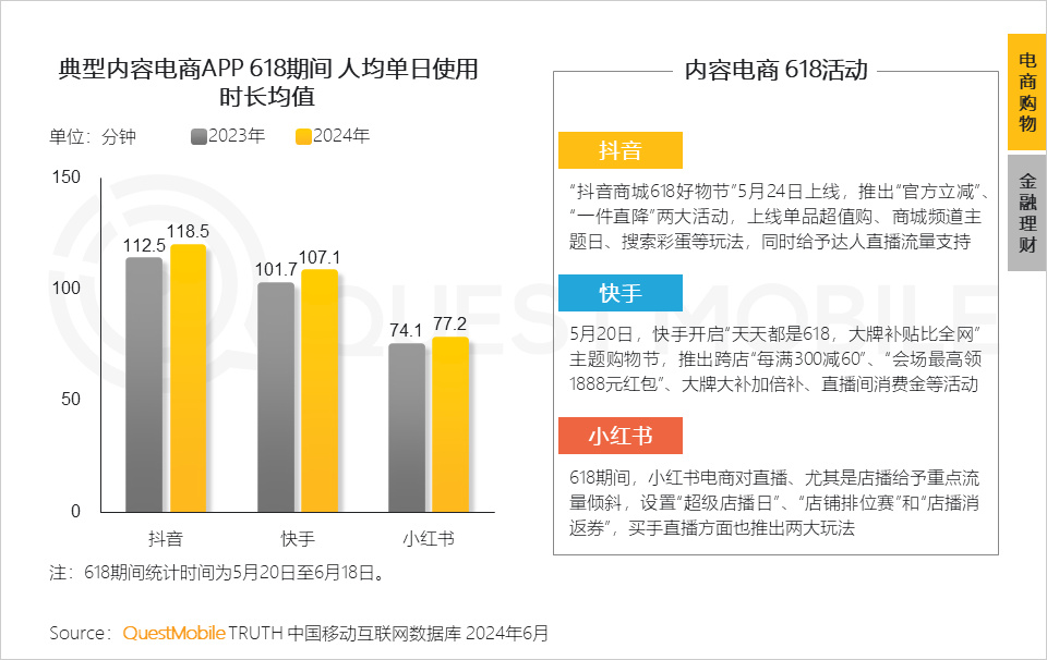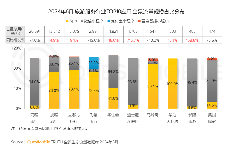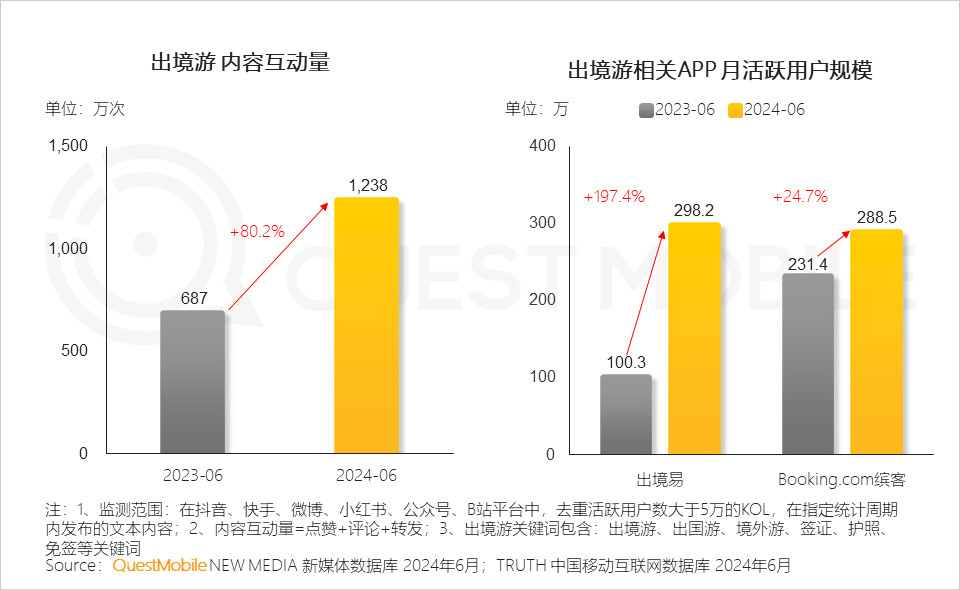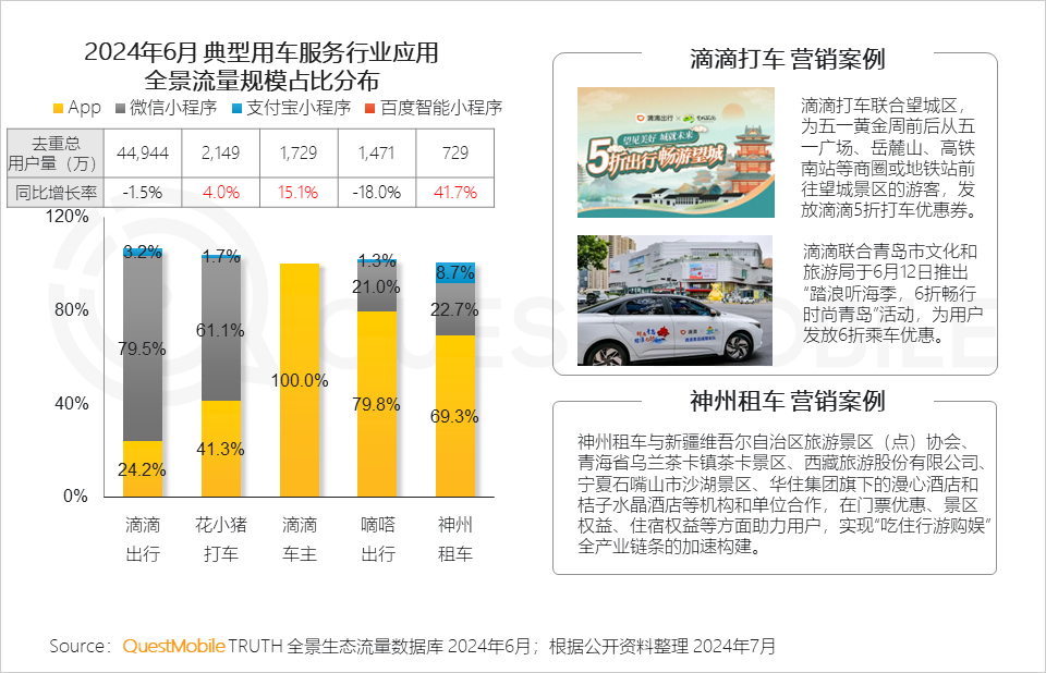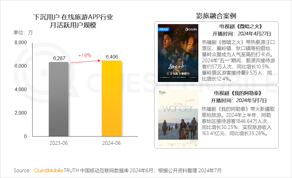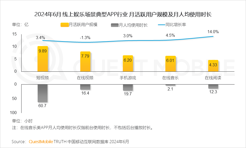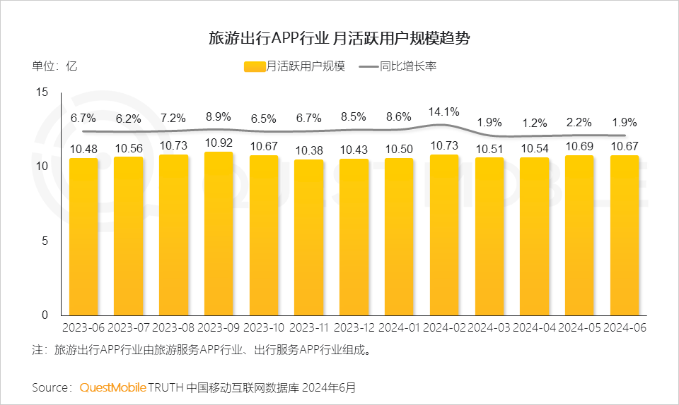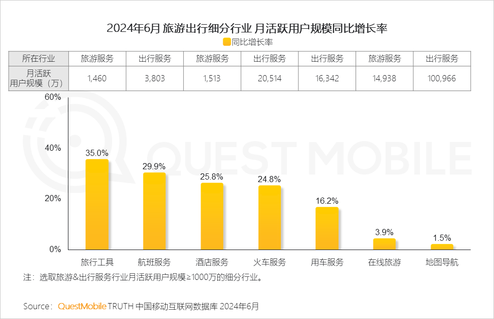 1.1 线上娱乐需求旺盛,多数场景均保持增长态势,短视频、手机游戏、在线视频为用户时长主要集中的数字娱乐领域1.2 短视频行业用户规模及时长保持增长态势,凸显了其持久的市场吸引力和发展潜力1.3 短视频行业流量高度集中,抖音、快手等月活跃用户规模TOP5APP占据行业超九成流量1.4 短视频头部平台重合用户规模达3亿,对内容创新、用户体验优化及差异化等提出更高要求,从而稳固现有用户群体并吸引新用户1.5 AI创作功能升级迭代加速,吸引用户积极参与QuestMobile数据显示,抖音旗下剪映APP、快手旗下快影APP均陆续上线AIGC类玩法增强用户吸引力,月人均使用时长分别达到50.2分钟、45.2分钟,同比提升7.1%和15.3%。1.6 腾讯视频凭借4亿月活跃用户规模登顶在线视频行业;短剧流量初具规模,红果免费短剧MAU突破7,500万1.7 内容影响力加深,优质剧集、综艺等内容带动平台流量提升显著1.8 在线音乐头部应用格局相对稳定,汽水音乐、番茄畅听音乐版增速亮眼1.9 在线音乐APP加强与汽车品牌深度合作,共塑车载娱乐新生态,提升用户体验,拓展市场边界QuestMobile数据显示,理想汽车与酷狗音乐、小米汽车与QQ音乐、AITO与网易云音乐APP重合率分别达到18.1%、37.7%和28.4%,体现出汽车用户对于音乐的高需求,也为车载音乐生态奠定流量基础。1.10 在线阅读头部平台保持增长态势,但值得注意的是,用户时长下滑明显,内容消费趋向碎片化,竞争加剧1.11 36岁及以上年龄段用户、三四线城市用户构成了在线阅读平台的高粘性用户群1.12 多款MMORPG、策略类游戏凭借丰富的社交互动和深度策略玩法,借助时效性运营活动,有效提升并保持了玩家活跃度1.13 《崩坏:星穹铁道》APP活跃用户规模稳定在1200万以上,用户粘性稳步提升,25-35岁年龄段用户为其核心用户群体,活跃占比超七成1.14 新上线的《地下城与勇士:起源 》6月活跃用户规模超2000万,人均单日使用时长达160分钟,作为经典端游的移动版,该游戏成功吸引了跨年龄段的广泛玩家群体1.15 休闲、解压、竞技对战等多类型微信小游戏收获千万流量Ⅰ. 人们对于生活服务的需求和粘性依然保持稳步加深,其中本地生活和电影演出行业同比增长较为突出Ⅱ. 生活服务类应用依然保持多元渠道流量布局特征,带动应用整体流量增长Ⅲ. 美团加速即时零售版块业务的发展,扩大合作品牌阵容,凌晨至早高峰时段人们的应急需求也在快速增长Ⅳ. 大众点评作为本地生活综合服务平台,与内容平台的用户交集在不断增长,其重合用户因内容平台特性形成鲜明差异Ⅴ. 美食服务平台渠道多元化布局的同时流量分布也在逐步均衡化,微信小程序依然是主力渠道Ⅵ. 各大连锁餐饮、新式茶饮品牌随近两年市场波动,线上流量也呈现差异变化Ⅶ. 快递物流行业保持平稳增长,无论是平台端还是配送端,同比流量均呈现不同程度提升Ⅷ. 电影演出市场的火爆带动平台流量也大幅增长,尤其在节假日和重要明星演唱会门票开售时间,会呈现明显流量高峰Ⅰ. 健康美容行业是今夏增长较为突出的行业之一,作为其主要细分行业,运动健身行业同比也大幅增长,时隔两年流量再次突破七千万Ⅱ. 2024年是体育大年,多项国际赛事在6-8月集中进行,极大带动了大家的运动热情,平台上热门项目也更加多样化Ⅲ. 运动健身行业头部APP多数呈现流量增长态势,其中热汗舞蹈、闪动校园、悦跑圈等深耕细分市场,流量增长更为突出Ⅳ. 人工智能在运动健身领域快速发展,除通过大数据模型为用户提供个性化、定制化的健身方案,在具体场景下,AI也得到充分应用,提升用户使用体验3.1 教育工具类应用因其高效便捷的辅助功能,日益受到广大学生与教育工作者的青睐,成为推动教育科技领域增长的新动力3.2 教师课件优化、家长作业核查、班级管理等场景数字化类应用流量表现亮眼3.3 求职招聘APP行业流量攀升,凸显市场活跃与数字化招聘趋势3.4 就业市场需求释放,头部求职招聘类APP流量提升明显3.5 求职招聘类APP重合用户数提升,凸显求职者多元化择业策略4.1 近一年用户外出需求的释放,促进旅游出行APP行业持续增长,目前规模已达10.67亿,市场增长潜力巨大4.2 旅游出行细分行业中,旅行工具、航班服务、酒店服务行业同比增长位列前三