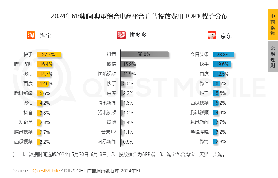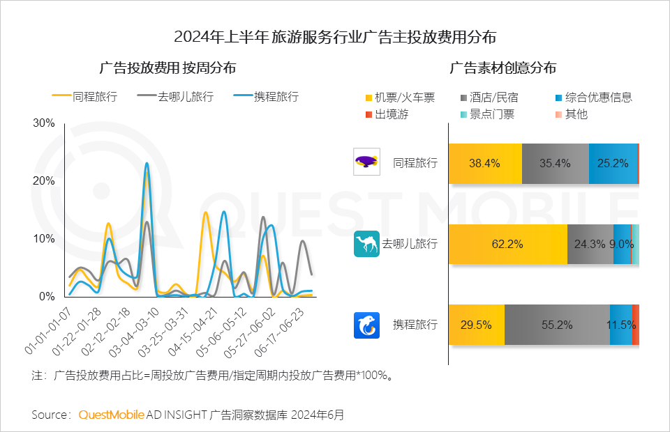 4.3 典型旅游平台通过多渠道布局获取流量,实现流量同比增长,其中迪士尼度假区、长隆旅游应用流量增长凸显,分别为715.7%、158.6%4.4 地域方面,在线旅游行业流量地域分布以北京、上海、天津等一线及新一线城市、沿海地区、西北地区流量占比显著4.5 电视剧的热播吸引了用户前往拍摄地打卡,各地通过创新的营销策略将城市塑造为新兴的热门旅游地,有效激活下沉市场经济4.6 暑期期间 “文博热”持续升温,促进高校、博物馆、公园和主题乐园的官方微信小程序实现流量增长,即点即用的功能模式更能迅速响应用户临时需求4.7 旅游服务APP广告投放节奏较为同步,广告创意多以酒店/民宿优惠为主4.8 Q2进入主题乐园的重要投放节点,抖音+微信双渠道曝光,并延续至暑期营销季4.9 适逢节假日,典型平台开展系列“打折出行”,促进平台活跃;此外,在新疆、西藏、青海等西部“旷野游” 市场火热下,租车平台流量增长4.10 随着出境旅游的持续火热,用户对国际旅行的热情不断升温,带动出境游类应用流量显著增长4.11 轮渡、火车、航空作为用户旅游出行的重要交通工具,普遍平台流量呈现不同程度增长4.12 出境游、自驾游和文旅游的热潮推动了酒店需求的激增,酒店行业利用数字化的技术不断优化住宿体验,从而进一步促进平台流量的持续增长5.1 二季度电商行业流量保持增长,“内容+直播”也成为传统电商平台不可缺少的一环,用户使用时长持续提升5.2 头部平台“淘拼京”,绿色经济与小众圈层经济的发展带动闲鱼APP流量同比增速超30%,数码电商平台流量也有较高增长5.3 今年618购物节期间,各电商平台纷纷取消预售,大促活动节奏提前,5月20日开始当天,流量即达到高峰5.4 抖音、快手和小红书等内容平台充分利用其直播优势,推出了一系列直播带货活动,提升用户参与度,618大促期间用户使用时长整体提升5.5 大促期间,跨平台通过广告跳转引流至综合电商平台尤为明显5.6 618电商大促期间,消费品牌集中营销,借助大促进行有效曝光
