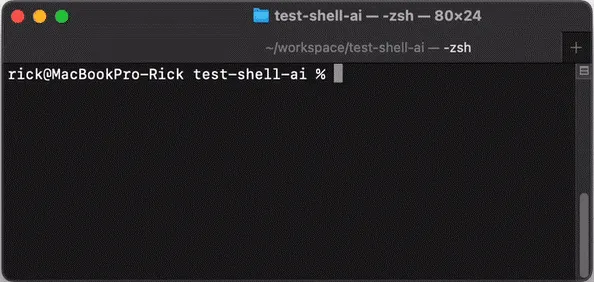 CLI 智能提示助手是一个命令行终端工具,支持用户用自然语言描述想做的事情,比如统计查找重复文件等,然后回复建议的 CLI 命令。这类工具开源社区已有多个实现,为方便展示,我们选取其中的 Python 技术栈版本 ricklamers/shell-ai,使用效果如下: