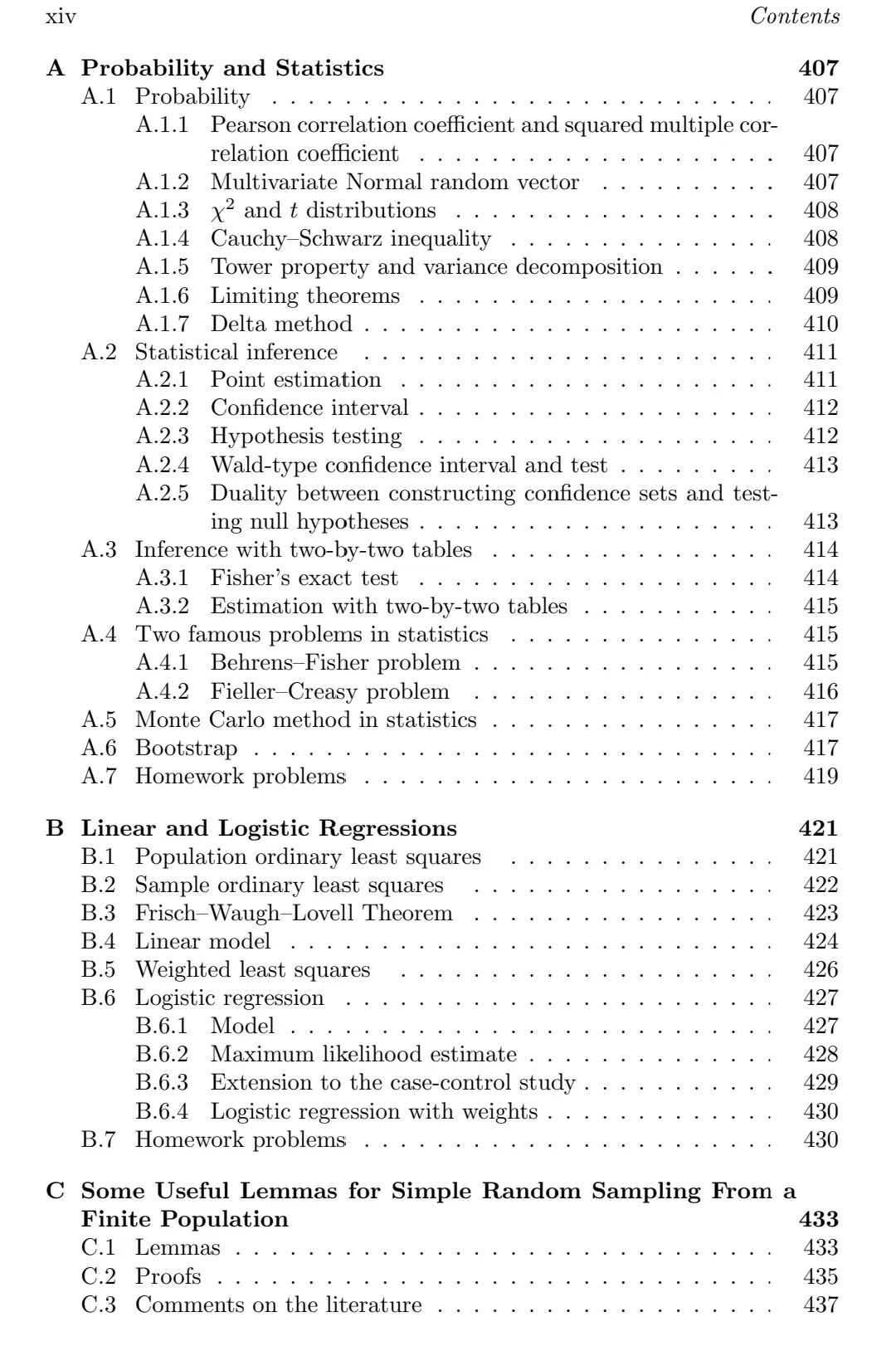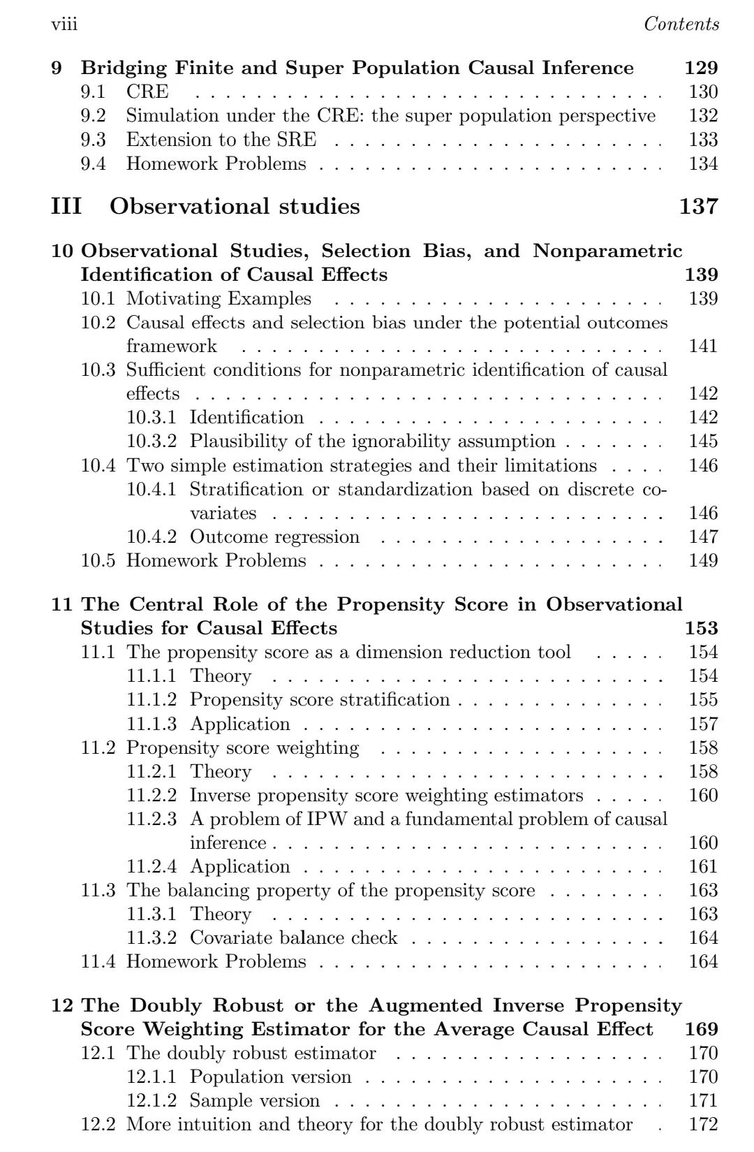 这本教材的练习题所需的数据和R代码已在Harvard Dataverse平台上公开,方便读者下载和使用:https://github.com/apoorvalal/ding_causalInference_python?continueFlag=ec2eaf0d6252752ec40a0a3ed71bc715此外,书中还提供了相应的Python代码,以满足不同编程语言偏好的读者需求:https://dataverse.harvard.edu/dataset.xhtml?persistentId=doi:10.7910/DVN/ZX3VEV&continueFlag=ec2eaf0d6252752ec40a0a3ed71bc715书籍目录如下: