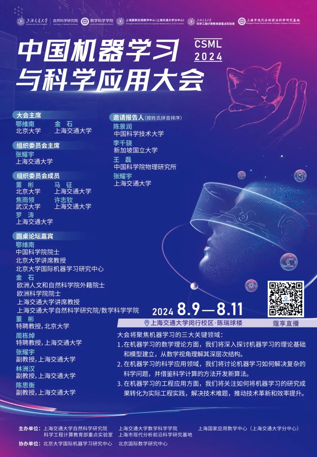 本次会议将深入探讨机器学习的三个重要领域。首先,数学机器学习,我们致力于从数学的角度深入探讨机器学习的理论基础和模型构建。其次,科学机器学习,我们将探讨如何将机器学习应用于解决复杂的科学问题,以及如何从科学计算中汲取灵感来设计新型的机器学习算法。最后,工业机器学习,我们将讨论如何将机器学习的研究成果应用于工业生产,以推动产业的技术进步和效率提升。