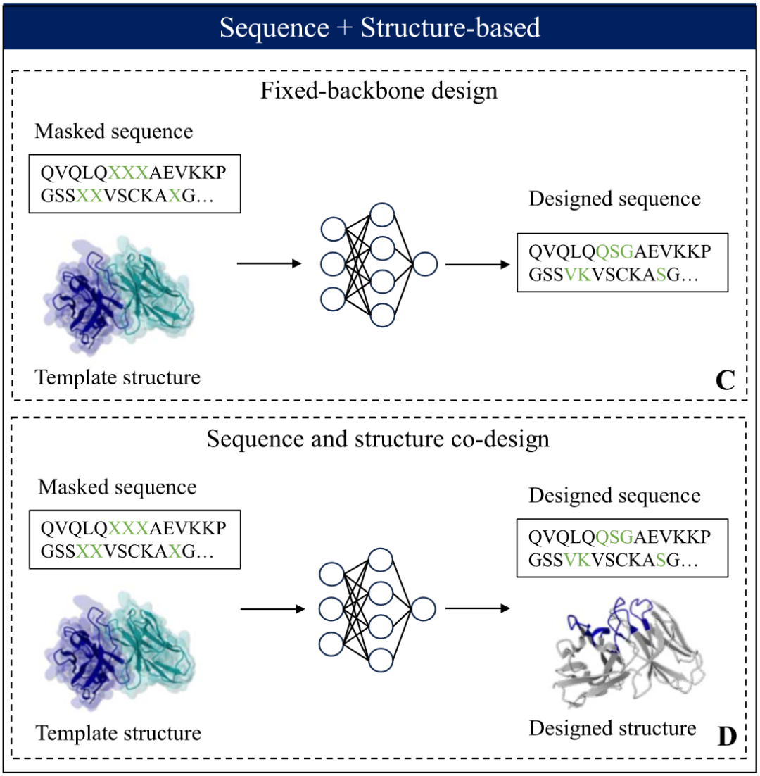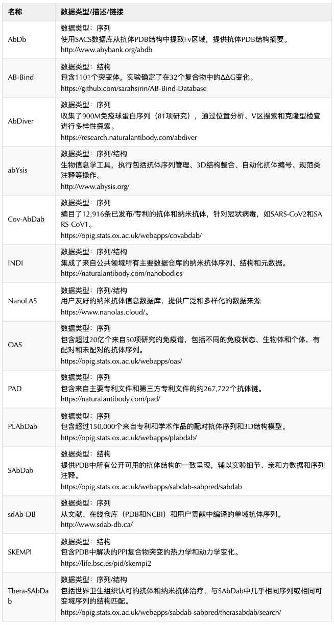 融合结构和序列信息是抗体设计中的一个前沿领域(见上图CD或下表)。通过整合这些互补的信息源,AI模型能够解读序列变化与结构适应之间的复杂关系,提供对抗体形式与功能之间复杂相互作用的洞察。例如: