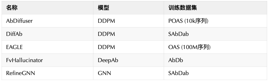扩散涉及向蛋白表示中引入噪声,直到它们变成高斯噪声。之后,训练一个DL模型来逆转这一过程,将噪声转化为现实的蛋白质结构。对于蛋白质设计,最有趣的方法之一是RFdiffusion,它建立在RosettaFold的微调版本之上。利用扩散模型进行抗体结构和序列的共设计,这类算法有: