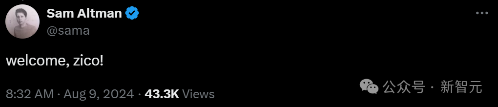 人才流失不断、痛失左膀右臂后,OpenAI终于迎来一员大将,奥特曼火速在评论区表示热烈欢迎。