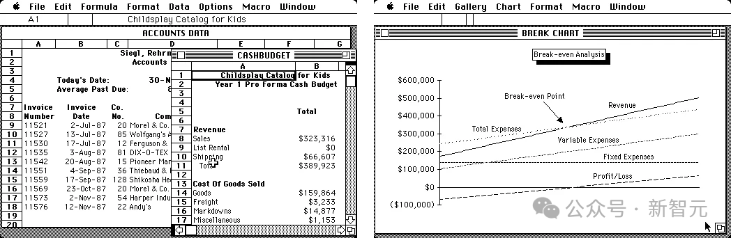 Microsoft Excel 1 for Mac (1985)《奥德赛》的开发者Jon Devaan称赞这个乔布斯机器的广泛可用性:“将软件从博士论文模式转变为普通人可以用的东西,这在当时是一件大事。Excel是一个很好的产品,因为它对于初学者来说,真的很容易上手——但是同时,它也是一个伟大的产品,因为它无比强大。专家级的哦你过户,可以完成从复杂的财务建模,到数据分析和可视化,再到构建视频游戏的所有操作。
