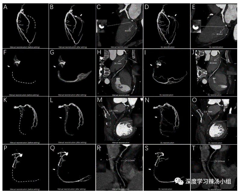 相比之下,商用工作站在没有人工干预的情况下仅48%(240例病变中的116例)的病变中成功重建了闭塞,深度学习模型的后处理测量时间比传统手工重建处理和测量时间短(初级放射科医师121秒比456秒,高级放射科医师106秒比348秒)。