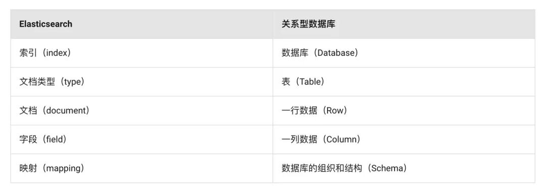 ES与非关系型的文档数据库类似,基于文档存储数据,没有固定的表结构。关系型数据库以二维表结构的形式来组织数据,并擅长提供对数据表间关系的管理。而ES以文档为数据的组织形式,进行扁平化存储,它不擅长进行关系管理而擅长对扁平化的文档进行文本检索。
