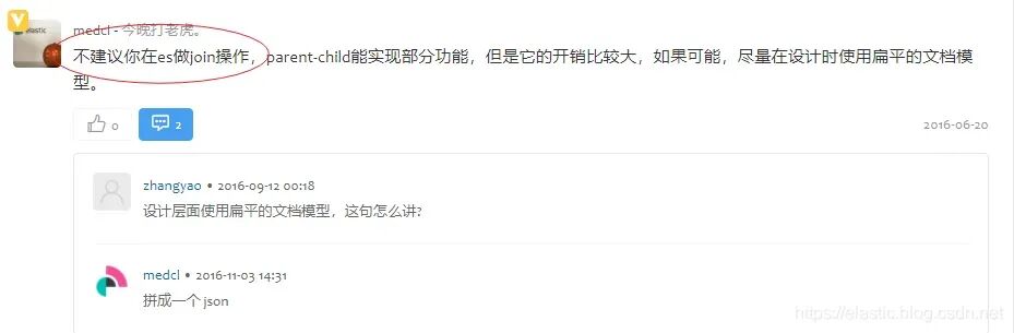 在ES中,由于其分布式存储特性和非关系性数据模型,类似关系型数据库中JOIN联表查询这样的操作将非常不便。ES内置了类似MySQL的JOIN的关联查询实现:父子文档,但它存在功能和性能上的限制:父子文档需要在在同一个分片中,额外实现关系管理需要的成本。ES官方通常不建议使用这种方式。