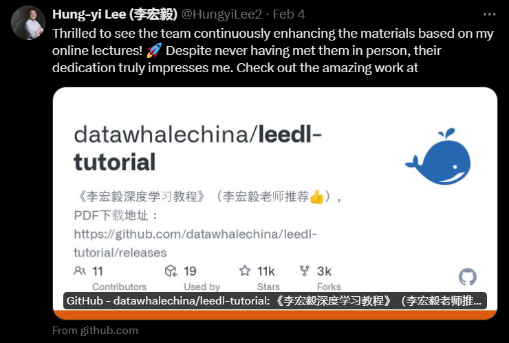 很高兴看到Datawhale的王琦、杨毅远、江季等同学将我的线上录影转化为可阅读的教材,他们的努力使我的教学内容能接触更多学子。希望这本书能帮助更多人探索深度学习领域,激发更多学子对这个领域的兴趣和热情。