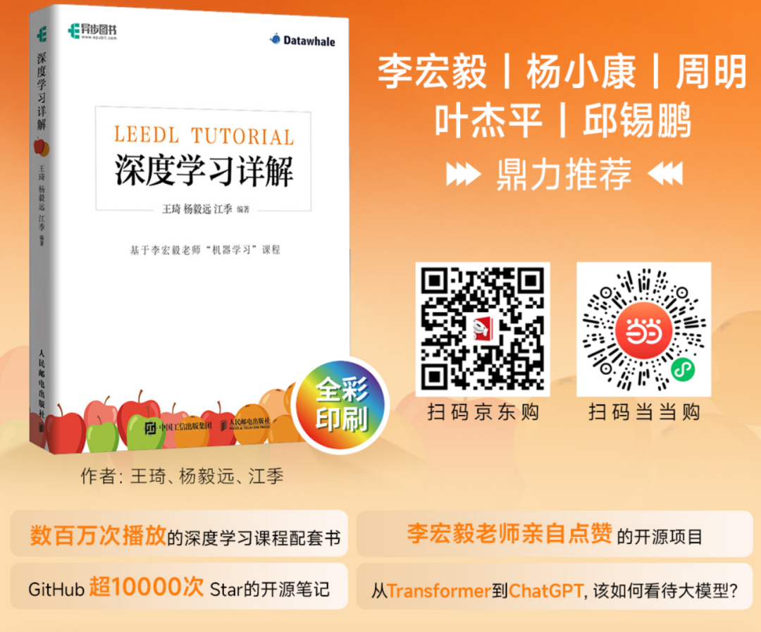 很高兴看到Datawhale的王琦、杨毅远、江季等同学将我的线上录影转化为可阅读的教材,他们的努力使我的教学内容能接触更多学子。希望这本书能帮助更多人探索深度学习领域,激发更多学子对这个领域的兴趣和热情。