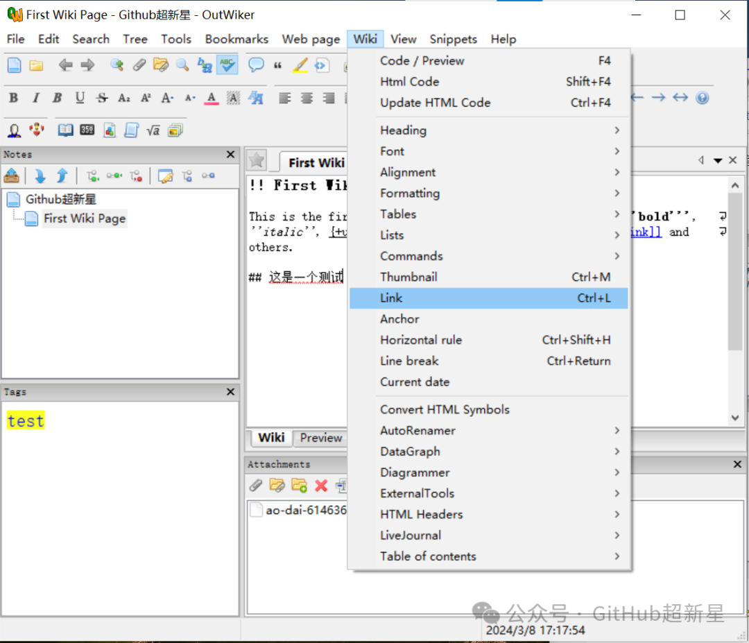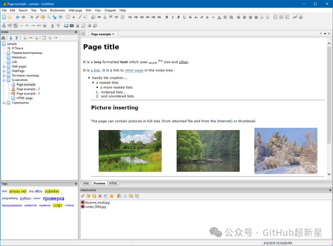 2. 附加文件:除了文字内容外,OutWiker还支持在笔记中附加文件,如图片、音频或视频,方便用户整理和管理相关资料。