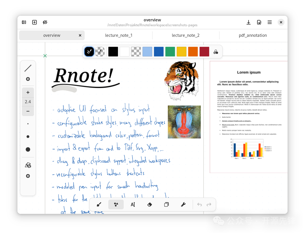 Rnote 是一款基于Rust编写的手写绘图笔记工具,不仅可以让我们快速记录灵感,还支持手写、绘图和导出 PDF 等功能,特别适合那些喜欢在电脑上涂鸦、记笔记的小伙伴们。
