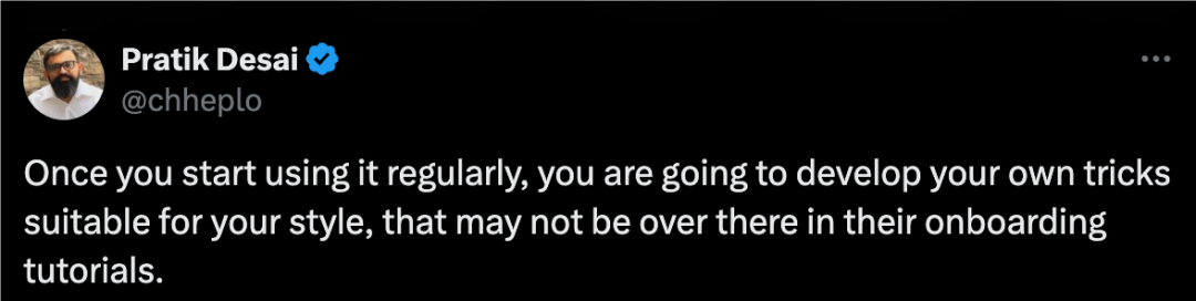 KissanAI CEO Pratik Desai 也补充说,一旦你开始频繁使用这个工具,你就会根据自己的习惯发展出一套适合自己的技巧,这些技巧可能在入门教程里都找不到。