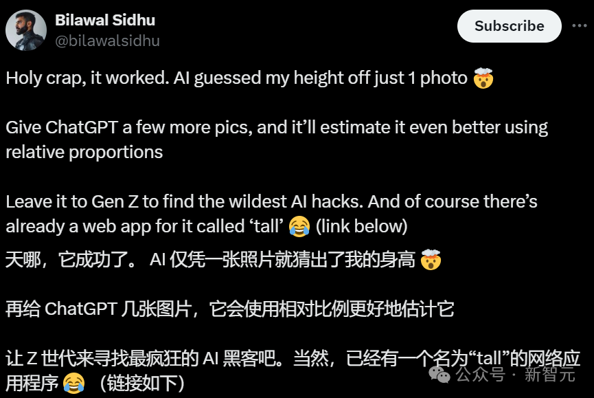 除了一眼识别身高,前段时间网友还发现了我们对ChatGPT的开发还不到一半。
