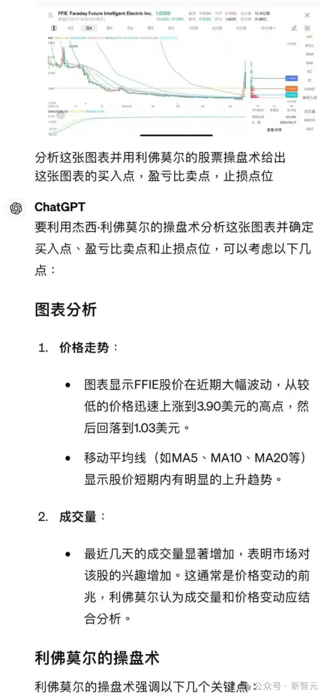 除了荐股之外,给GPT-4o一张股票图表,分析能具体到买点、卖点、止损点位、价格上的形态结构。