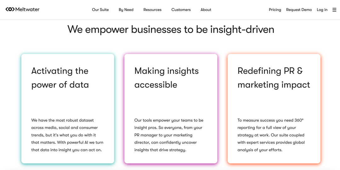 1、强大的数据集:Meltwater拥有跨媒体、社交和消费者趋势的强大数据集。