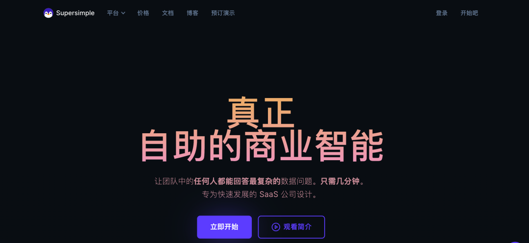 Supersimple 是一家专注于为B2B SaaS(Software as a Service,软件即服务)公司提供商业智能(Business Intelligence,BI)解决方案的公司。他们的产品旨在帮助这些公司更有效地管理和分析数据,以便做出更明智的业务决策。