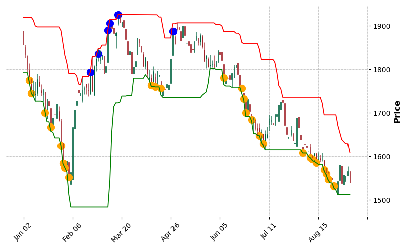 ap4 = mpf.make_addplot(df1['看跌突破点'], scatter=True, markersize=100, color='orange')