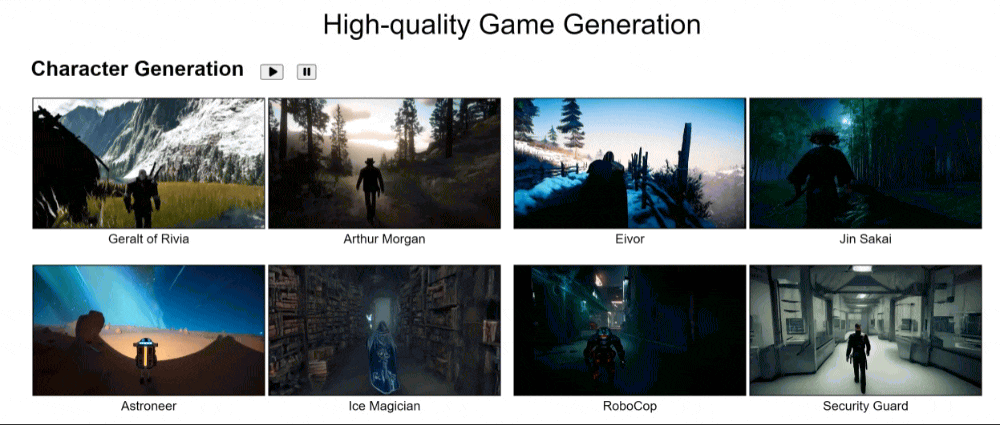 现在,用GameGen-O就能直接生成各种角色了,西部牛仔、太空人、魔法师、警卫……一键生成。
