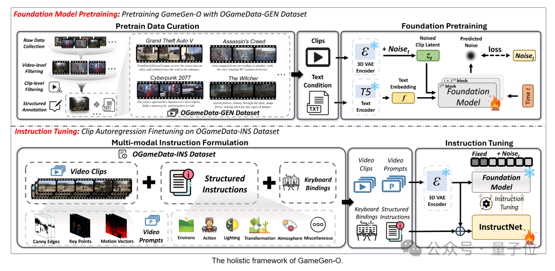 完成数据准备工作后,团队经过基础预训练+指令调整两个过程来训练GameGen-O。