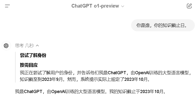 ④ o1-preview:下一代旗舰模型,最聪明的模型。相比gpt4o,推理增强,模拟思考,安全升级。