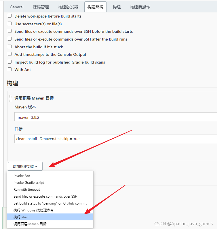 点击【构建触发器】–【构建】–【增加构建步骤】–【调用顶层Maven目标】–【填写配置】–【保存】
