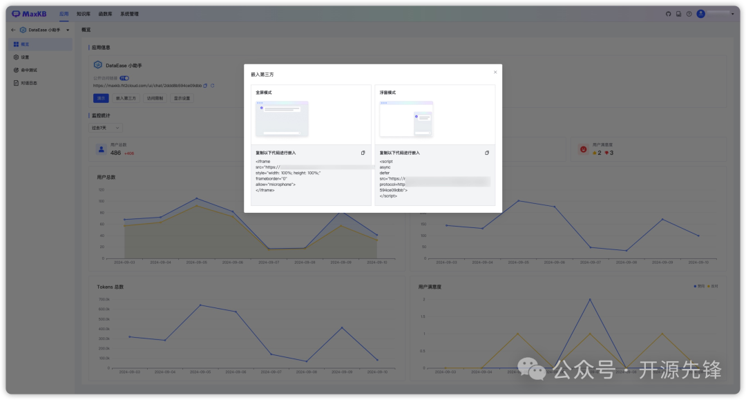 - 无缝嵌入:可以快速嵌入到现有的第三方业务系统中,为你的系统增添智能问答能力。无需重新开发,就能让系统秒变智能。