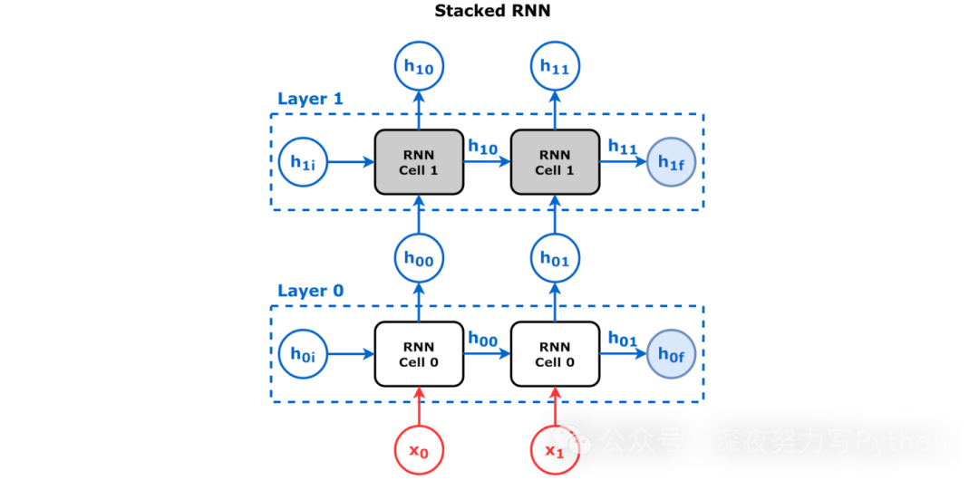 其中, 是时间步 的输出, 是权重矩阵, 是偏置项, 是输出的激活函数(例如softmax用于分类任务)。