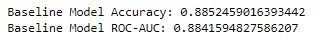 from sklearn.model_selection import train_test_split from sklearn.linear_model import LogisticRegression from sklearn.metrics import accuracy_score, roc_auc_score df_normalized['target' ] = df['target' ] df_normalized['target' ] = df_normalized['target' ].apply(lambda x: 1 if x > 0 else 0 ) X = df_normalized.drop('target' , axis=1 ) y = df_normalized['target' ] X_train, X_test, y_train, y_test = train_test_split(X, y, test_size=0.2 , random_state=42 ) model = LogisticRegression() model.fit(X_train, y_train) y_pred = model.predict(X_test) accuracy = accuracy_score(y_test, y_pred) roc_auc = roc_auc_score(y_test, y_pred) print("Baseline Model " + f'Accuracy: {accuracy} ' ) print("Baseline Model " + f'ROC-AUC: {roc_auc} ' )