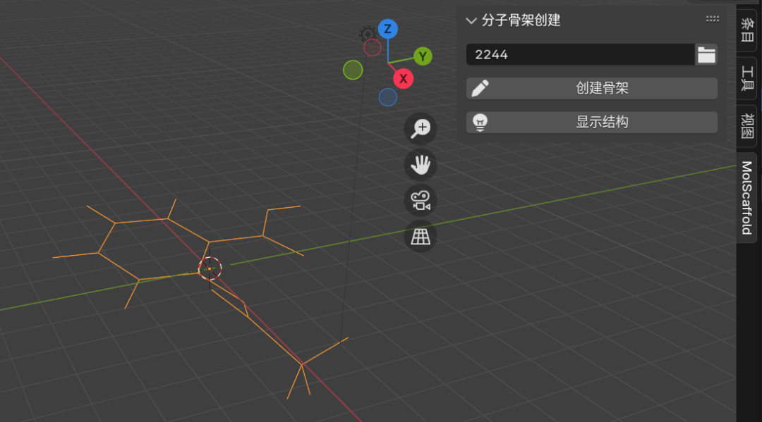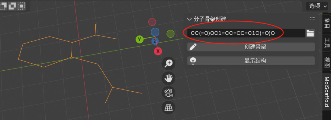 例如,Aspirin在PubChem网站的CID编号是2244。只需要在输入栏输入“2244”,然后点击“创建骨架”按钮,就可以导入Aspirin分子的点线骨架啦。