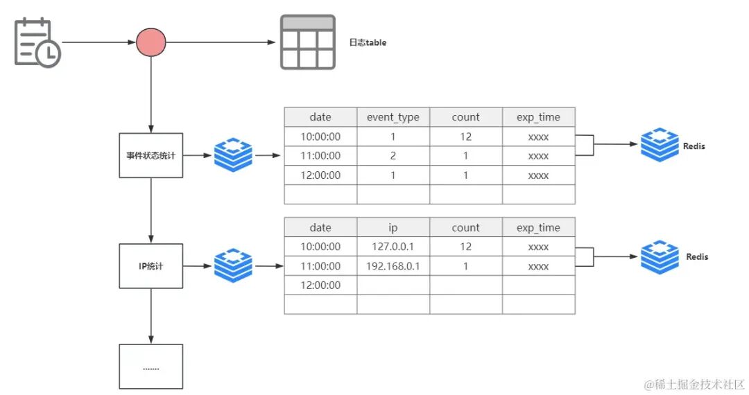 原有逻辑是直接查询数据库,通过sql来实现统计,这种方式如果在数据量小的情况下并不会出现什么问题并且实现方式也相对简单。但是,当数据量上去之后,sql的查询效率就会随之下降,即使通过优化索引的方式也无济于事。