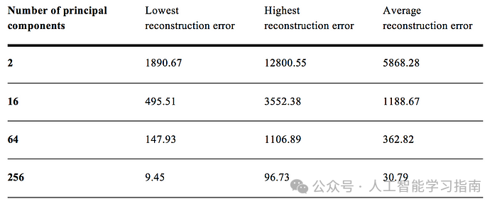 这是因为维度降低越多,用于重构的原始信息损失就越多,为了在选择组件数量时优化降维与信息保留之间的权衡,一个常见的方法是计算每个组件数量的PCA解释方差,并选择方差在95-99%之间的组件数量,以确保不会丢失太多数据信息。