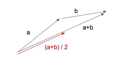为了理解这种行为,让我们设置一个虚拟场景,其中我们有两个梯度向量 a 和 b,每个表示一个训练示例的梯度。让我们考虑一下批量大小 = 1 的平均批量更新大小与批量大小 = 2 的情况相比如何。