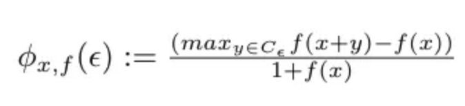 请注意,这是一种相当简单的锐度测量方法,因为它只考虑一个方向。因此,Keskar 等人提出了一个锐度度量,用于衡量损失函数在最小值附近的邻域内的变化程度。首先,我们定义邻域如下: