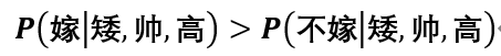 现在又来了一个男士新的特征(矮,帅,低),来进行预测嫁与不嫁,当我们进行计算