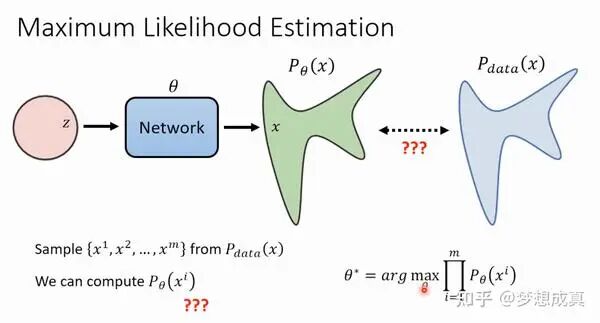 目标函数 众所周知,生成式网络都是为了让估计出来的分布更加接近真实的分布 。由于分布这个东西很抽象,一般都是使用一个dataset,然后都是要最大化网络估计出来的后验分布似然,也就是上图中右下角的公式。实践中,这个公式不能直接优化,需要转化,VAE中优化ELBO也是同理。这里省略推导。