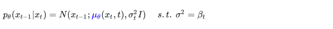 注意,均值 就是DDPM要训练的单元,方差 在DDPM中是固定的,后续DDPM的优化工作也做成可训练的了。