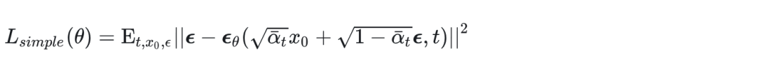 我们可以简单理解下 这个损失函数,这个损失函数有两个参数,一个是 ,我们可以理解为带有噪声的图像(clean image 和 noise 以一定的权重相加),另一个就是t,也就是到了中间哪个timestep。