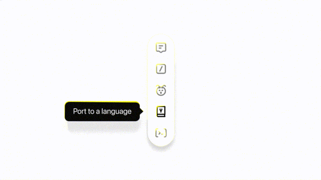 - 移植到一种语言:将您的代码转换为JavaScript、TypeScript、Python、Java、C++或PHP