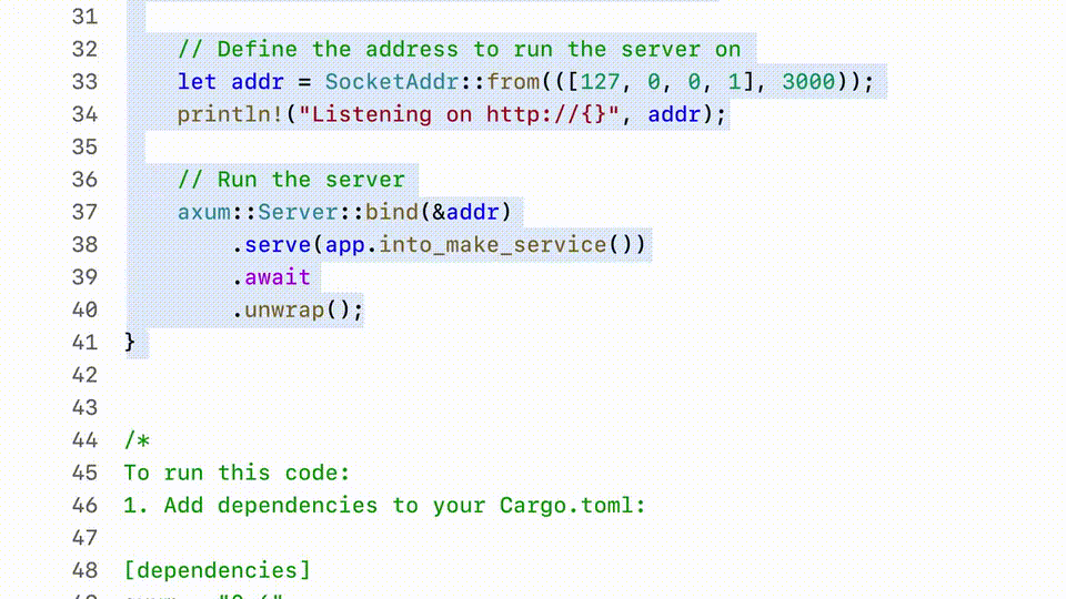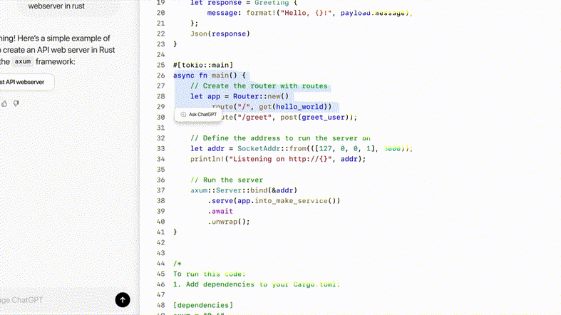 让ChatGPT用Rust写一API网络服务器,它便同以往一般,为你生成了代码。