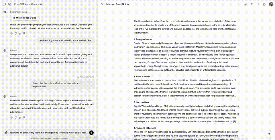 canvas的推出,正是要为这类工作提供新的界面,而且能让ChatGPT更好地理解用户提供的任务上下文。