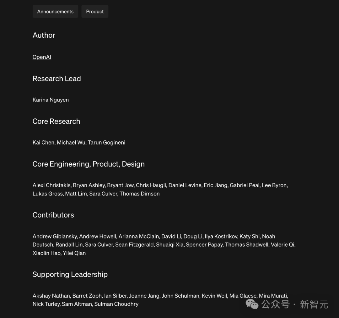 研究主管是Karina Nguyen,还有3位核心研究人员Kai Chen, Michael Wu, Tarun Gogineni,12位核心工程/产品/设计师。