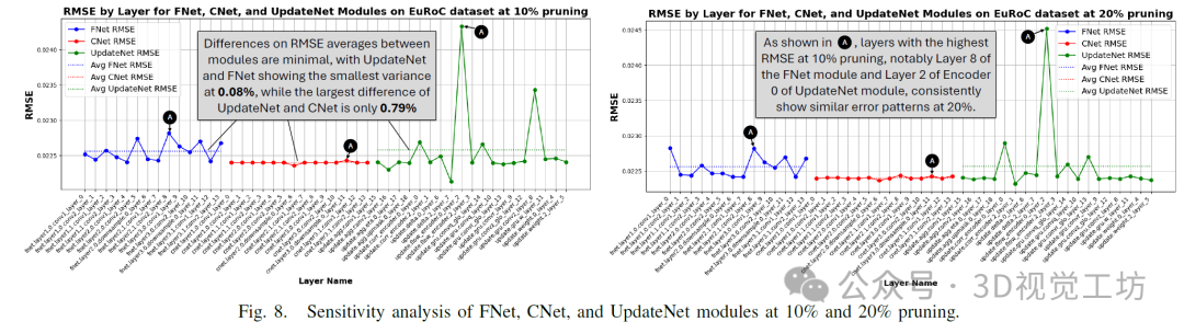 3)在EuRoC数据集的所有单目序列上测试剪枝后的模型,并记录由此产生的误差,以评估层剪枝的影响。