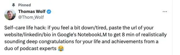 Thomas Wolf 提出了一种自我表扬的方式:下载你的 LinkedIn 个人资料,上传给 AI 让主持人深入了解你有多么了不起。