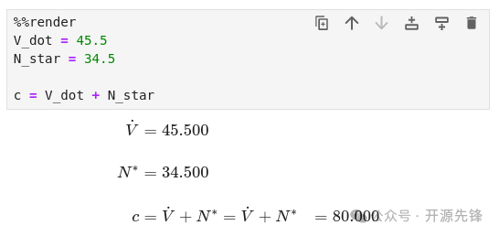 在需要渲染的代码块前加上%%render魔法指令,剩下的交给handcalcs去搞定!比如: