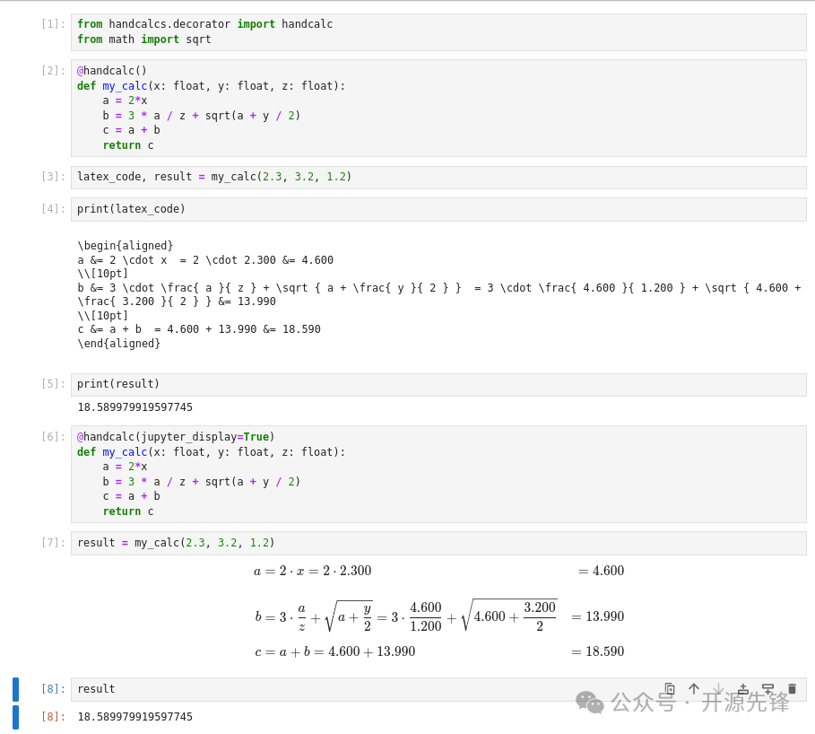 实际使用handcalcs时,发现它特别适合教学、文档编写或者科研展示。不用再担心别人看不懂你的代码计算过程,甚至可以一步一步展示变量的推导过程。