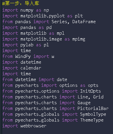 (2)在导入“库”时已经导入了Windpy,并设置为w,之后的语句直接使用w即可。语句需要以w.start() 开始,否则所有与wind相关的程序都无法运行,但只要运行一次后不用重复运行。