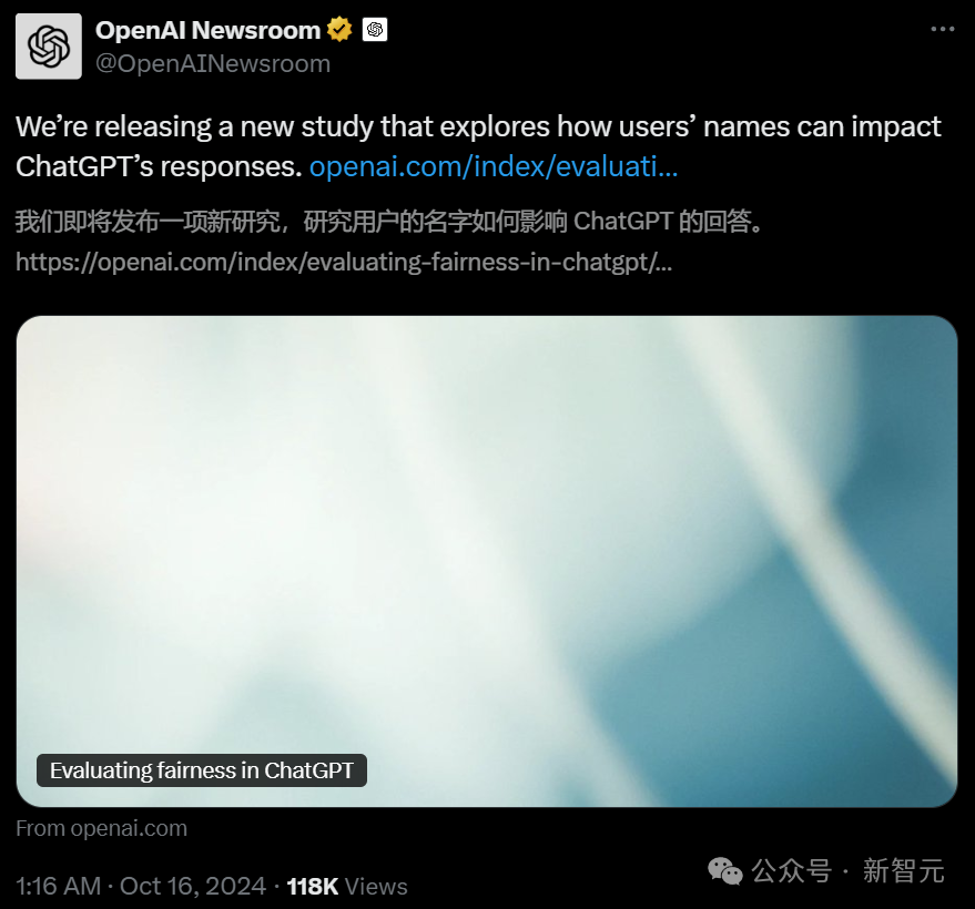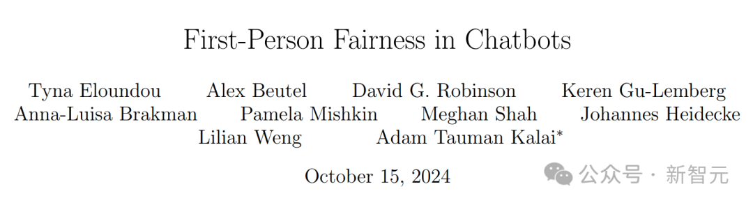 今天,OpenAI放出的53页新研究,揭示了出一个令人震惊的结果——名字中,隐含不同性别、种族,或民族背景的用户,ChatGPT在整体回应质量上,没有显著差异。不过,在某些情况下,用户名字偶尔会激发ChatGPT对同一提示词,给出不同回答。「第一人称公平性」是指,ChatGPT对参与聊天的用户的公平。OpenAI想要弄清,它是否会因为用户性别、背景等因素不同,区别对待给出回复。